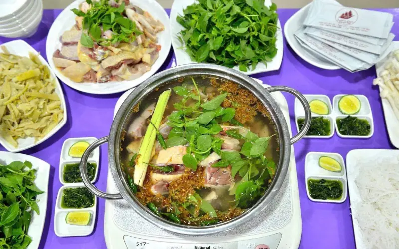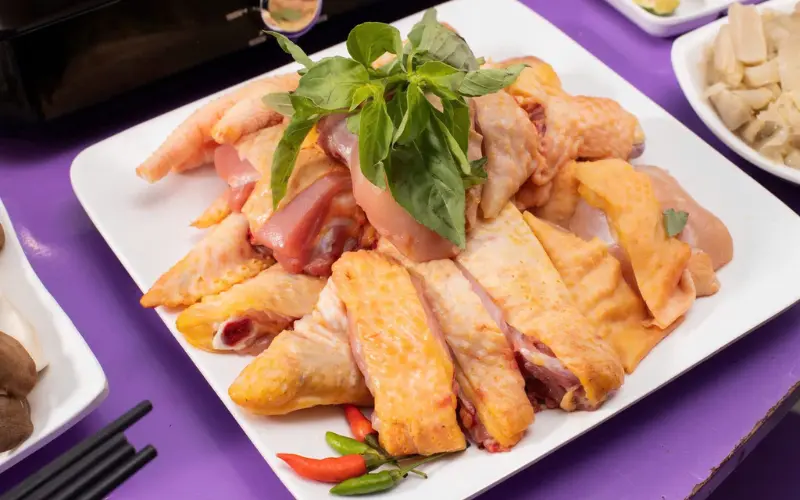 Vị ngọt thanh của gà ta, hòa quyện cùng hương thơm nồng nàn của lá é và chút cay tê của ớt hiểm. Một trải nghiệm ẩm thực không thể chối từ tại Kim Mã.